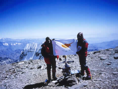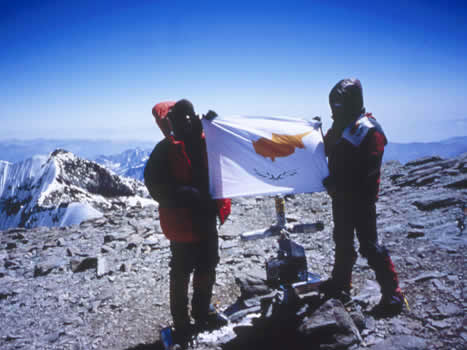 Success in becoming the first Greek Cypriot to climb the highest mountain in the Americas... Mount Aconcagua. Height 7000m (22,850 feet)